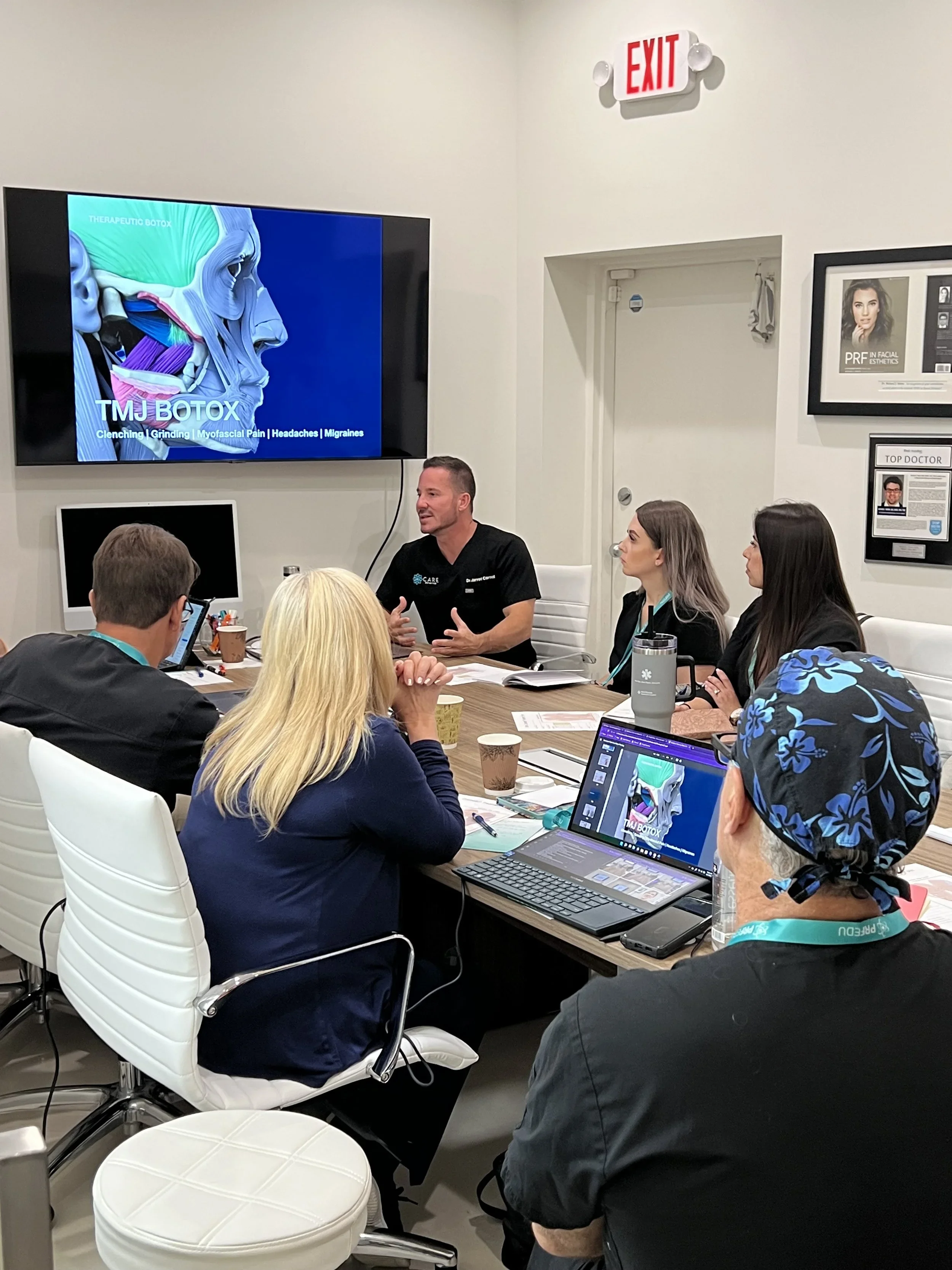 Our 2-Day (16-hour) Hybrid Course combines comprehensive didactic instruction and hands-on live patient training to teach you how to successfully treat orofacial pain, headaches/migraines, TMD syndrome, and TM joint pain with non-surgical, reversible, and minimally invasive treatments that are highly effective. Learn how to immediately integrate Therapeutic Botox for TMJ, Trigger Point Injections, Photobiomodulation, and PRF injections for TM Joint pain into your practice.